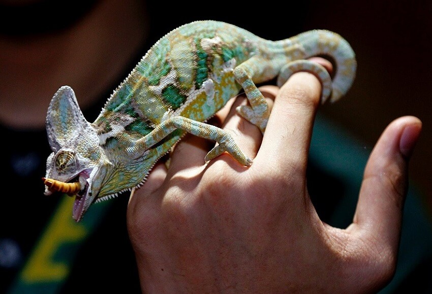 Zato je potrebna skrb za higieno rok vedno po rokovanju s kameleonom, prav tako skrbimo za dezinfekcijo opreme in primerno odstranjevanje iztrebkov. Odsvetuje se zadrževanje plazilcev v kuhinji, jedilnici in družba plazilca med hranjenjem ter pitjem.
