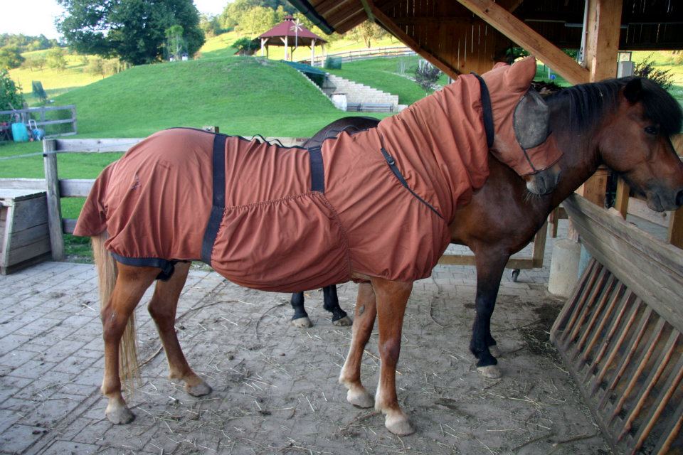Za konje, ki večino časa preživijo na prostem, je priporočljivo, da so pokriti s posebnimi pokrivali, ki nudijo zaščito za celotno telo, pokrivajo pa lahko tudi glavo in spodnje dele okončin. Ta pokrivala so pogosto obdelana z repelenti, ki insekte odganjajo, kljub temu pa lahko prizadetim konjem še dodatno pomagamo tudi z rednim nanosom repelentov.