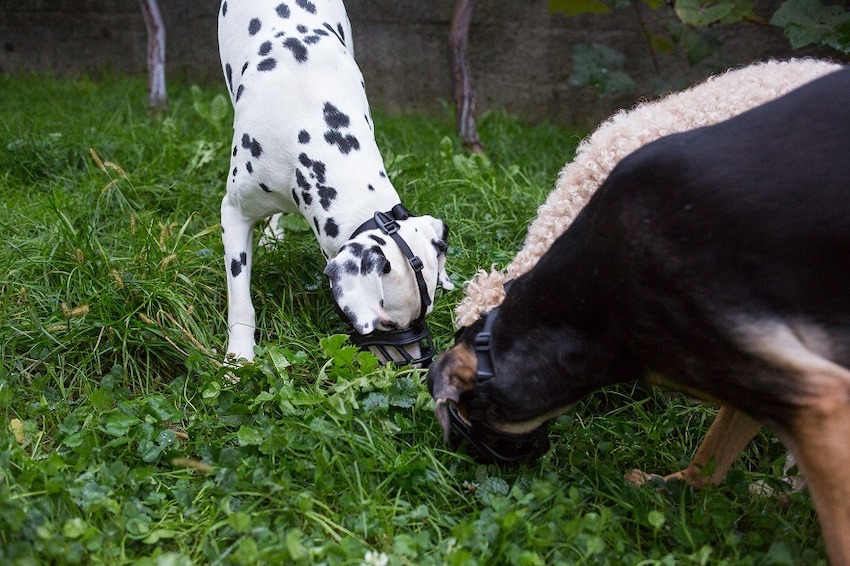 Če se pes nagobčnika izogiba, ta korak ponavljamo toliko časa, dokler psu ni popolnoma udobno v njegovi bližini in da sproščeno, brez zadržanosti in hitrih gibov pobira priboljške, raztresene okoli in v njem.