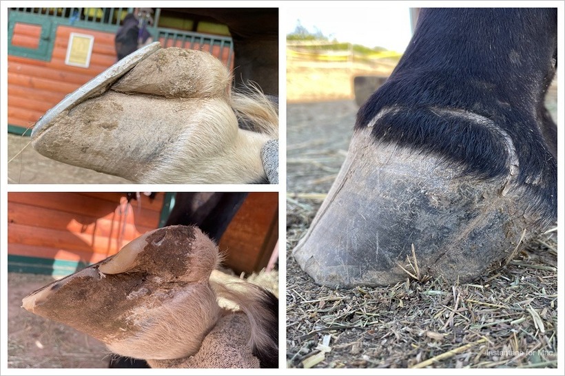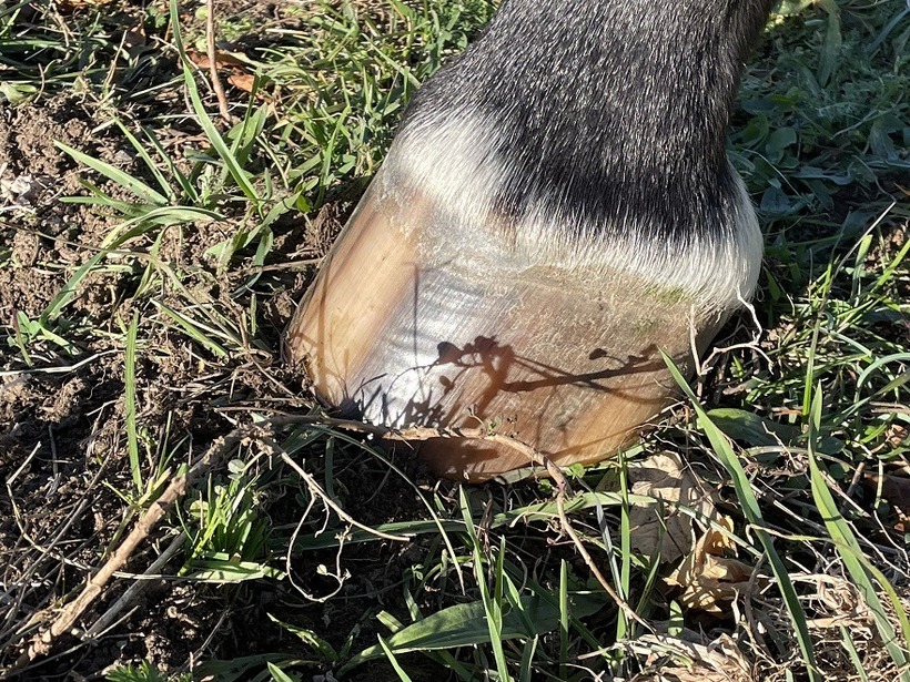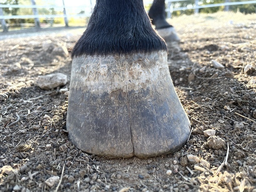 Konjeva peta je bila pod podkvijo izredno nefunkcionalna in roževina oslabljena, zato je ostala kopitna stena še vedno slabo povezana. Ko smo konja po več letih razkovali in vzpostavili pravilno ravnotežje, smo s tem podprli naravne mehanizme, ki so sprožili ponovno zdravljenje. Roževina se je pričela obnavljati in povezovati od znotraj navzven.